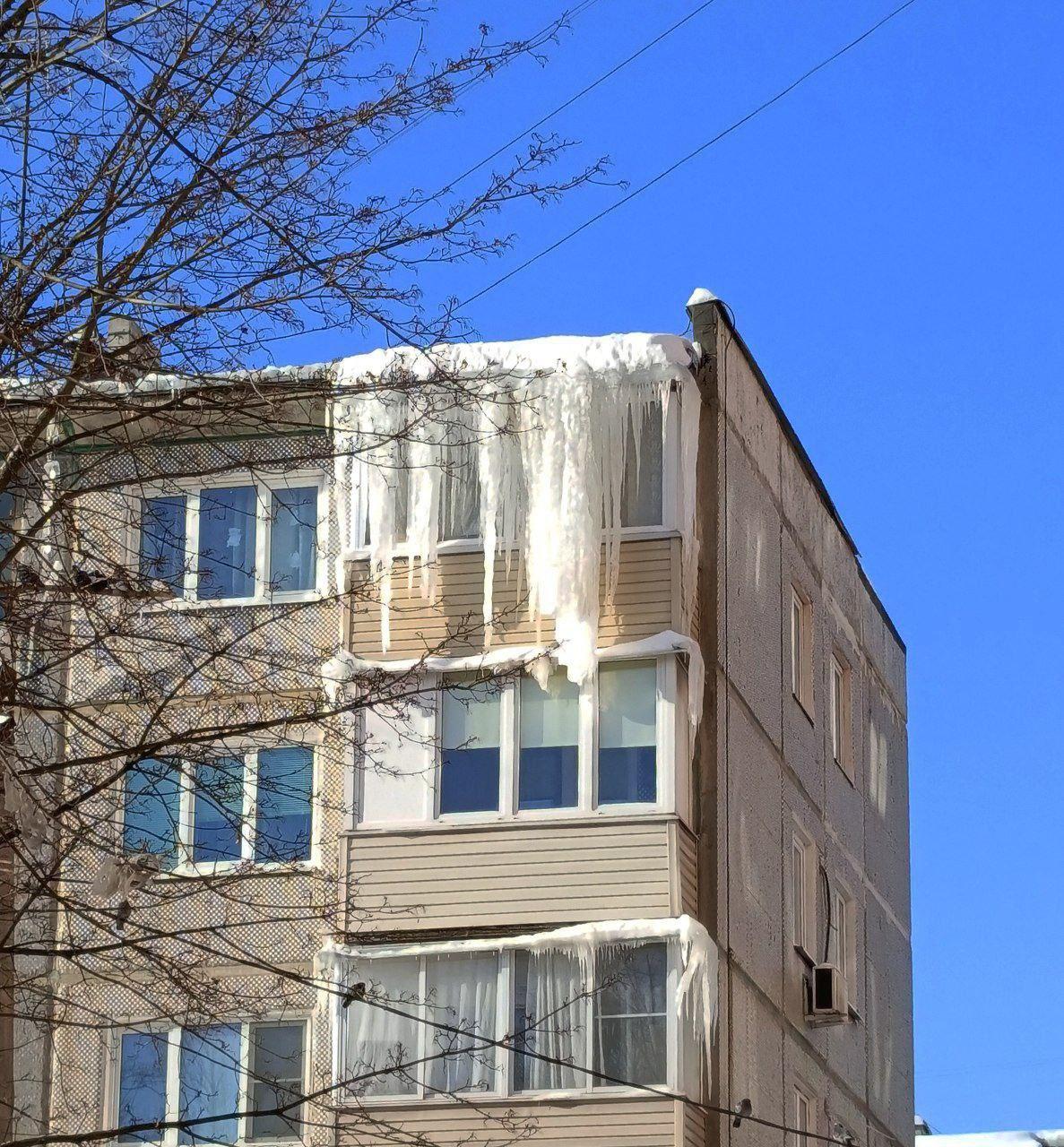 Фотография сосулек на жилом доме по улице Калинина