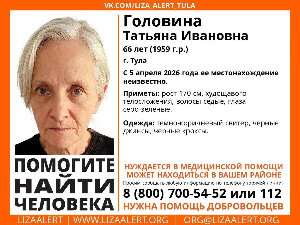 Поиски 66-летней Татьяны Ивановны Головиной (в девичестве Киселевой), родившейся в 1959 году, продолжаются в Туле уже третьи сутки.