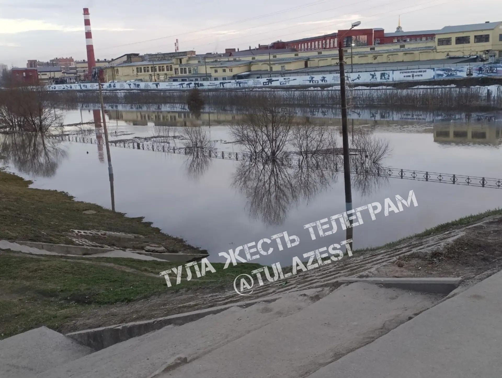 Из-за паводка в Туле под водой оказались набережные и парки, жители делятся кадрами последствий.