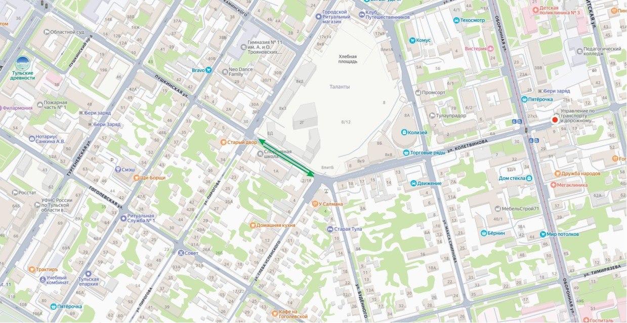 Администрация города Тулы сообщила о планах возобновить движение автомобилей по улице Пушкинской с 19 декабря.