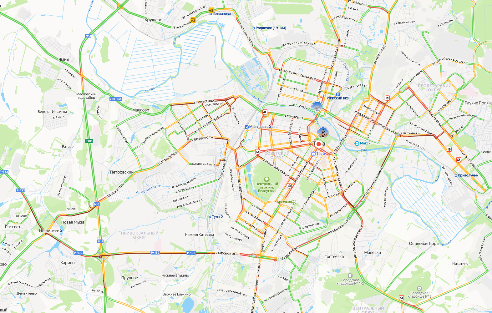 Общая картина дорожных заторов в Туле 29 января.
